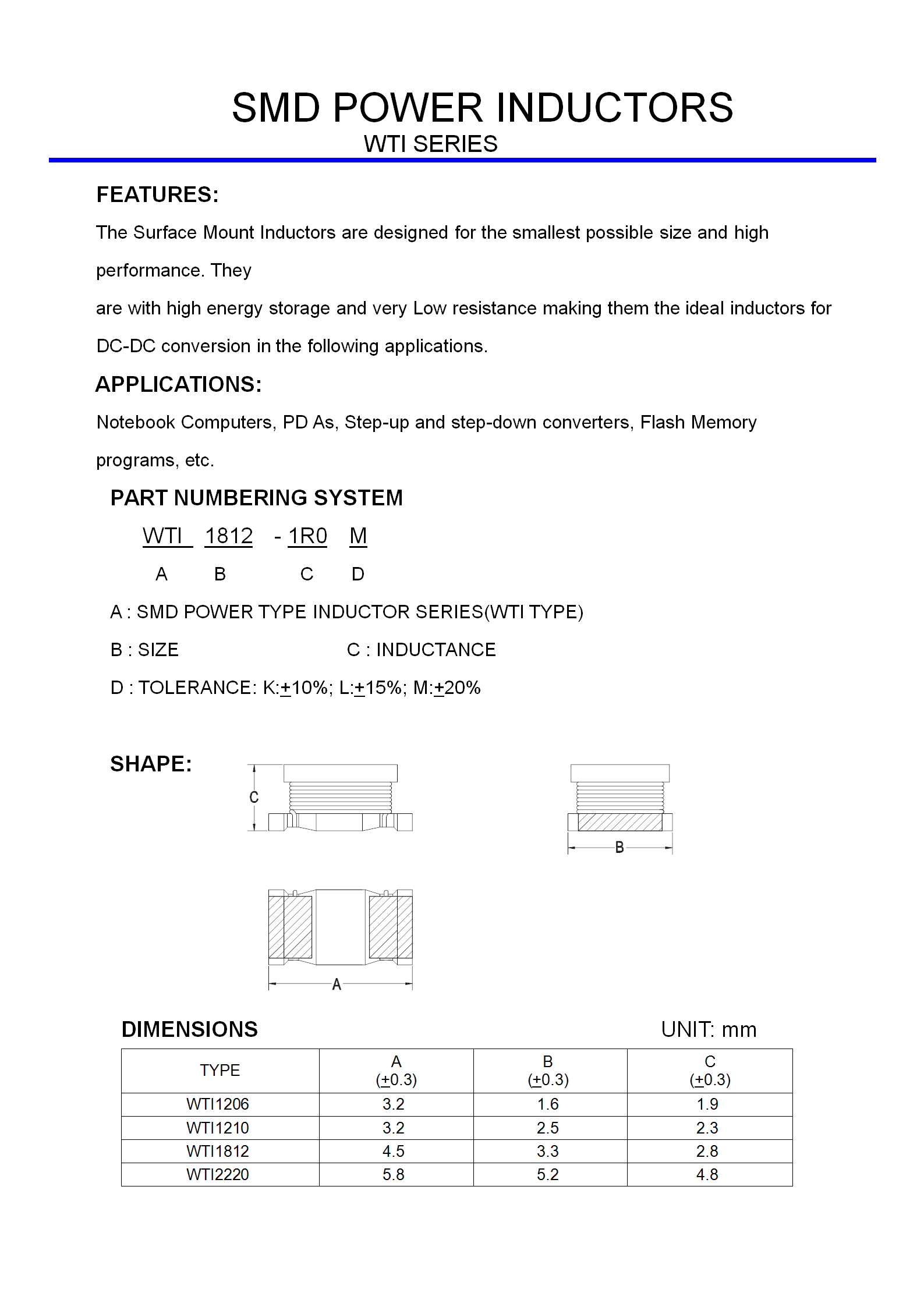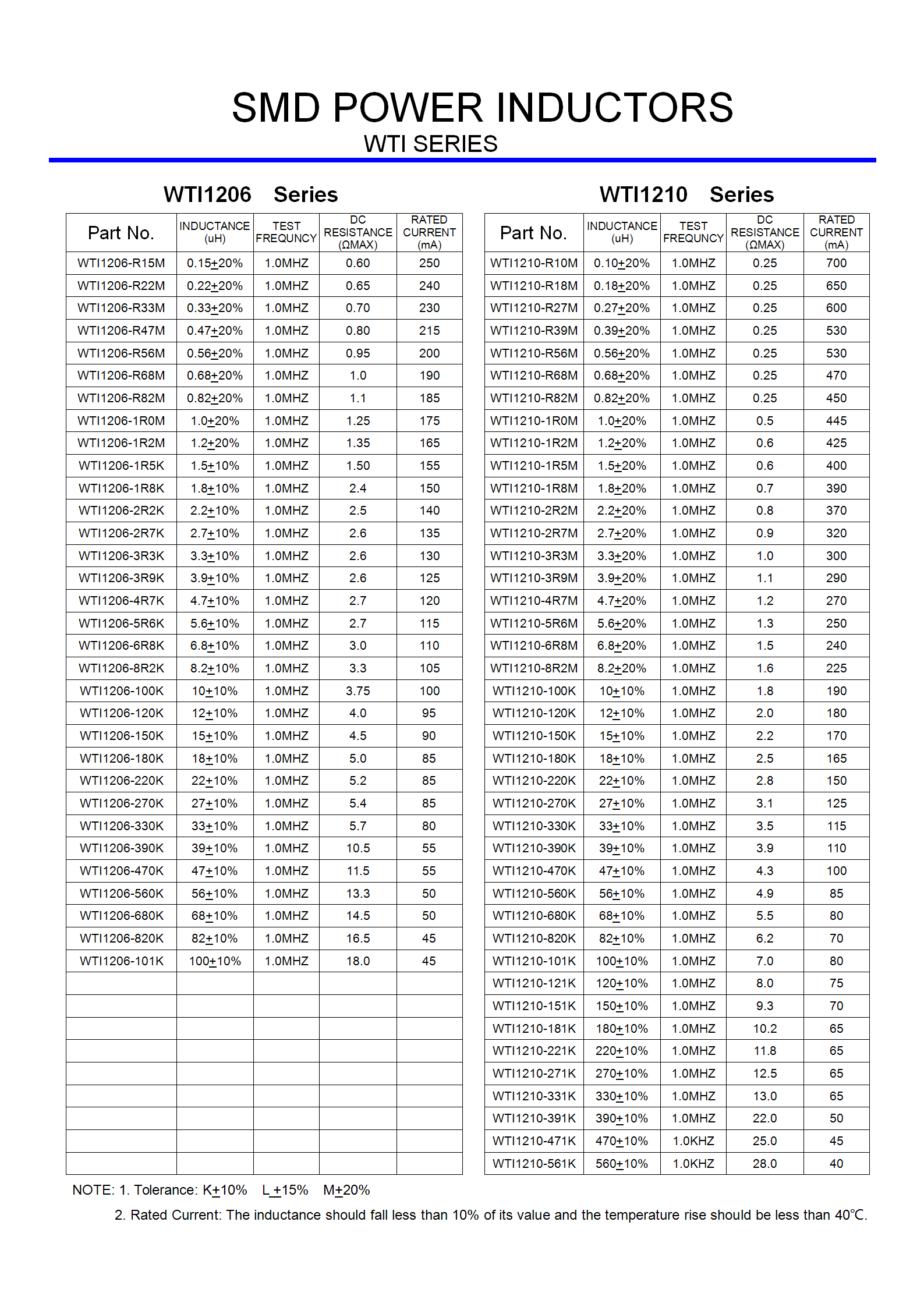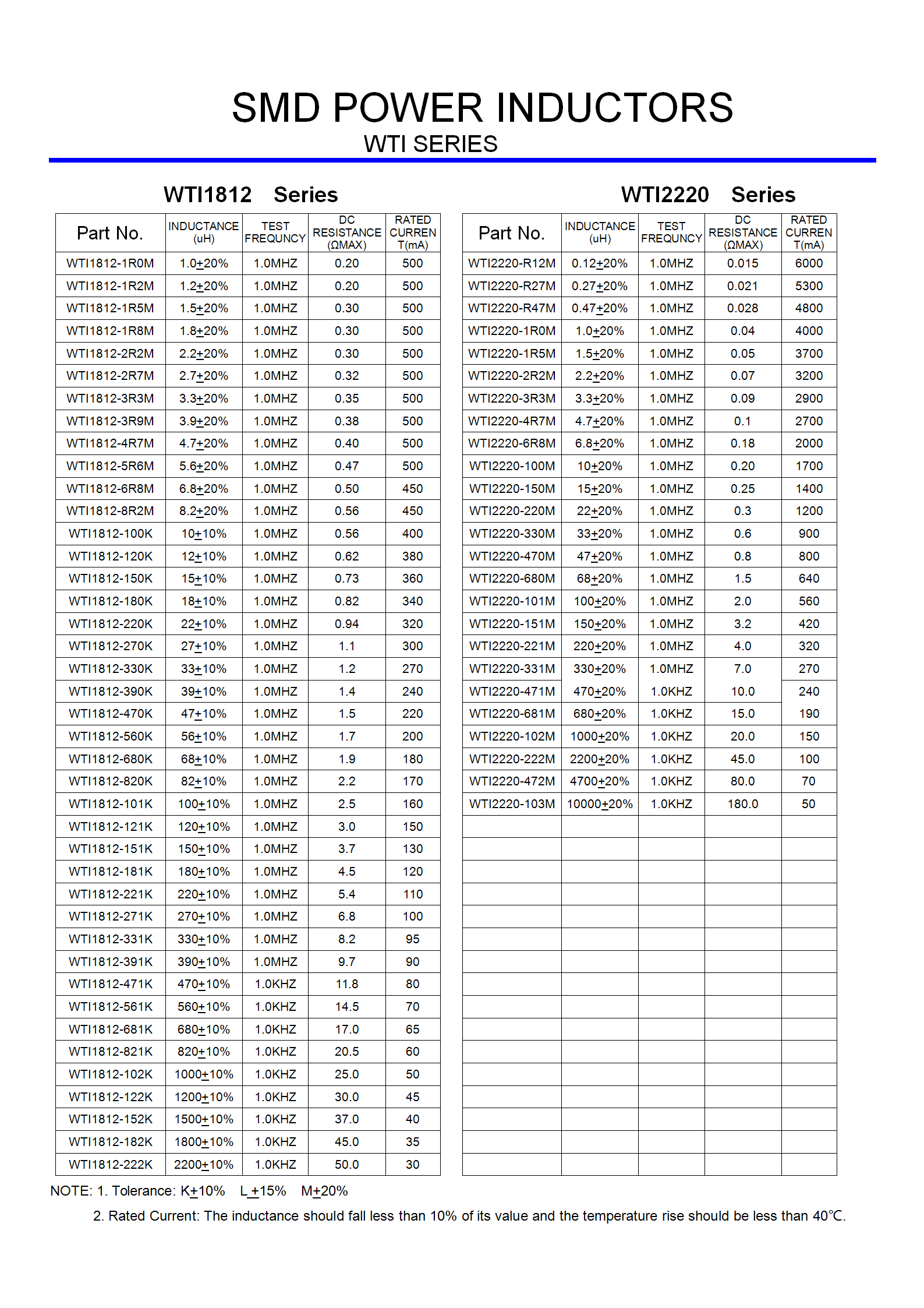 产品型号:WTI 1206/1210/1812/2220 SERIES